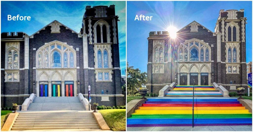 Dallas Church Responds to Rainbow Crosswalk Removal Initiative by Painting Its Steps in Rainbow Colors